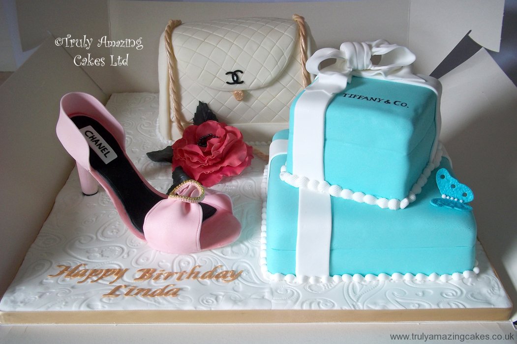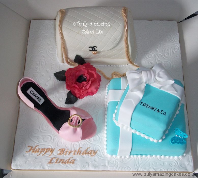 Shoe, handbag and giftbox cake