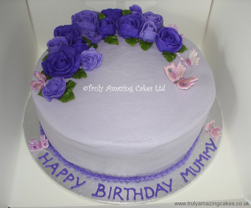 Purple buttercream roses cake