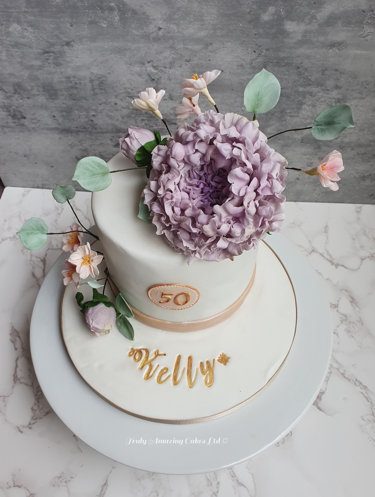 Peony and blossom sugarflower cake