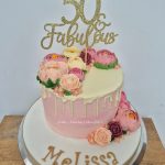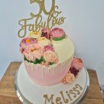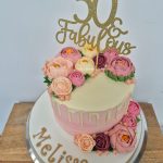 Floral chocolate drip cake