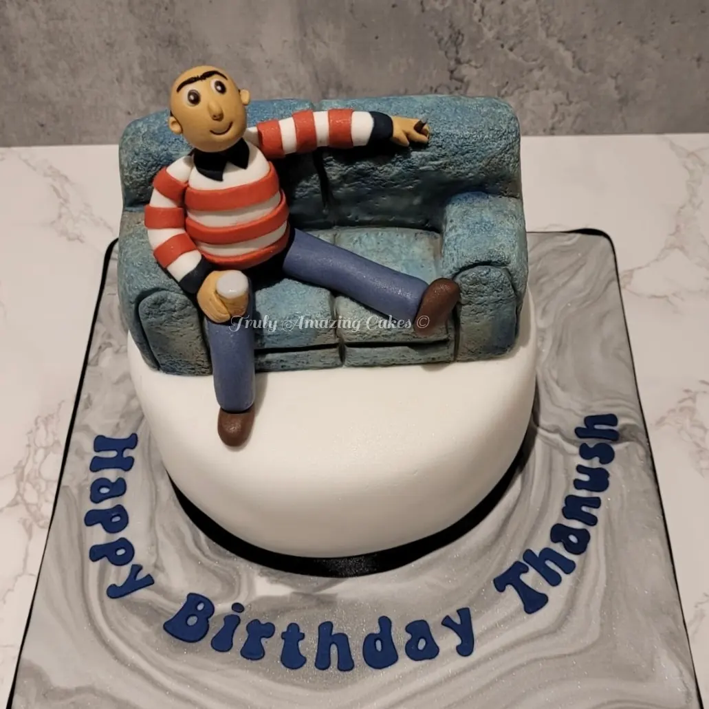 Man relaxing cake