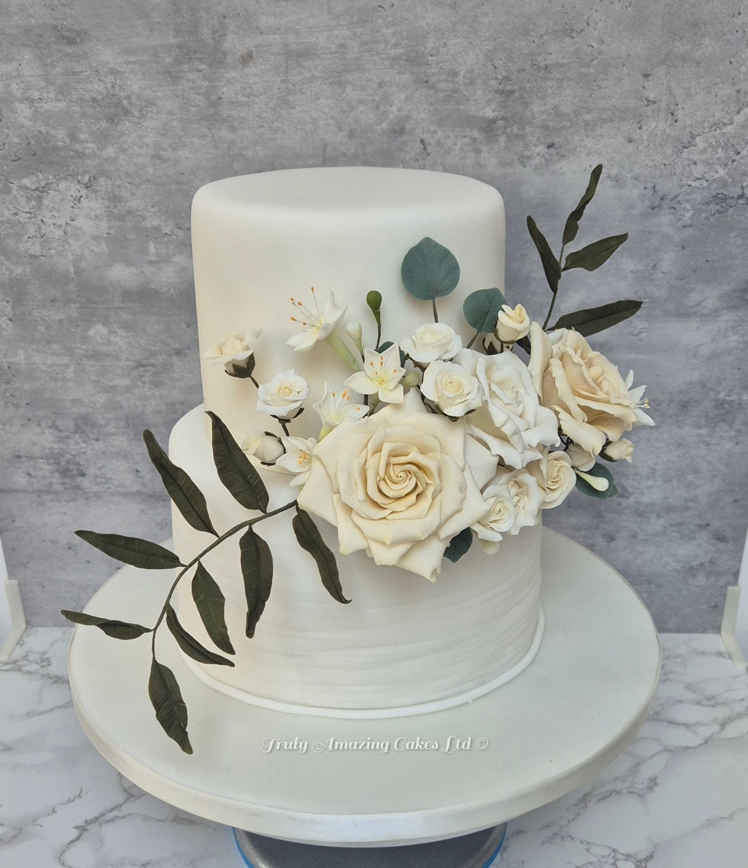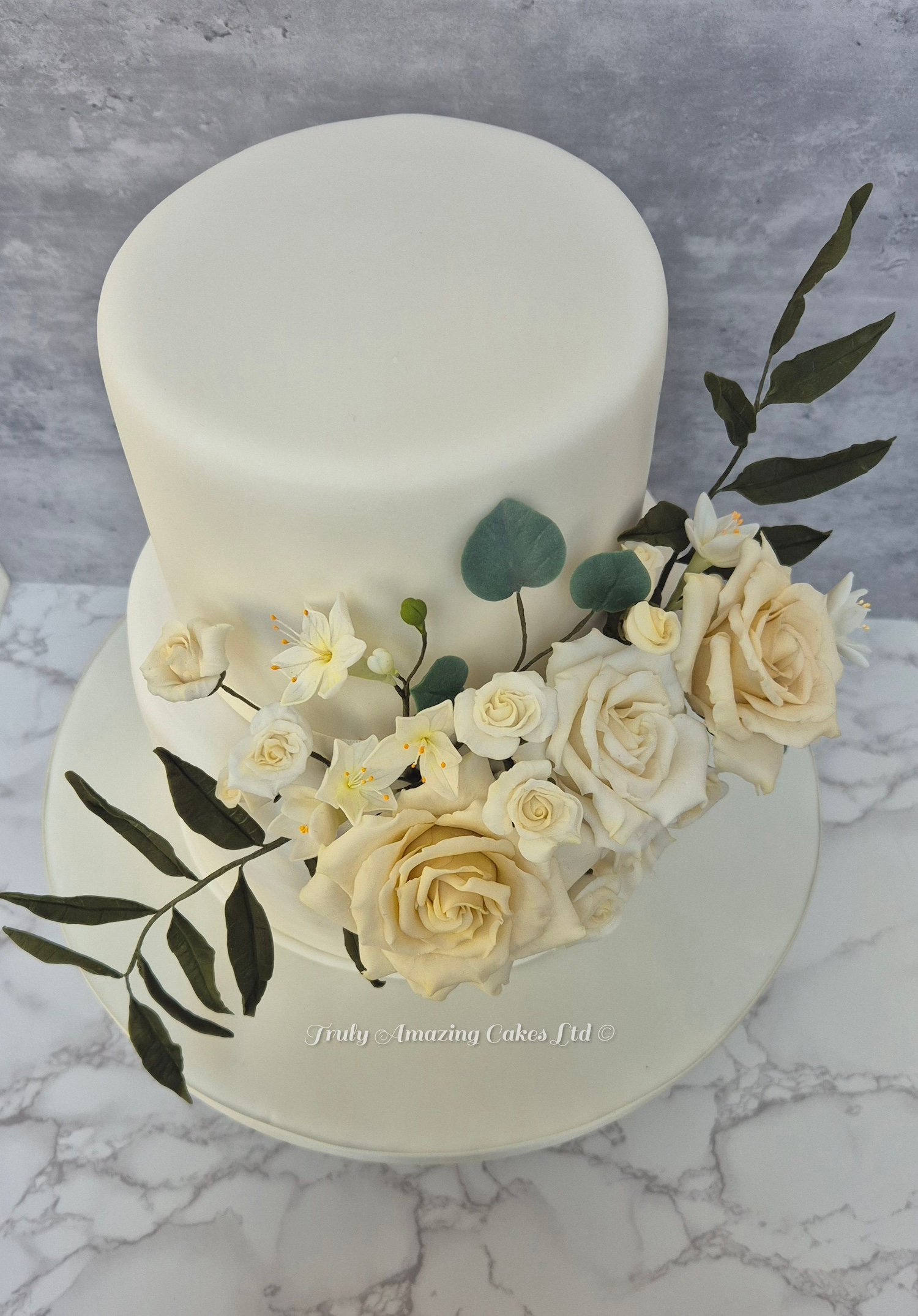 Ivory and white floral wedding cake